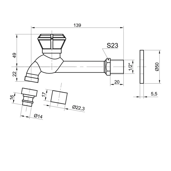 Brass Faucet Wall Mounted Bibcock Cold water faucet Garden faucet